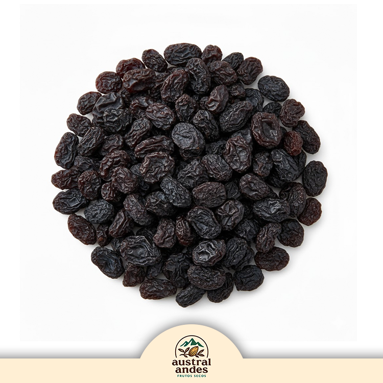 Dulces, suaves y naturalmente energéticas. Nuestras Pasas Negras Austral Andes son seleccionadas cuidadosamente para ofrecerte un producto de calidad superior, con el equilibrio perfecto entre textura tierna y sabor intenso.